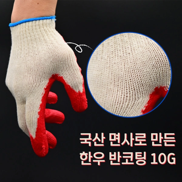 한우장갑 이중코팅 청색 라텍스 코팅장갑 [100켤레]
