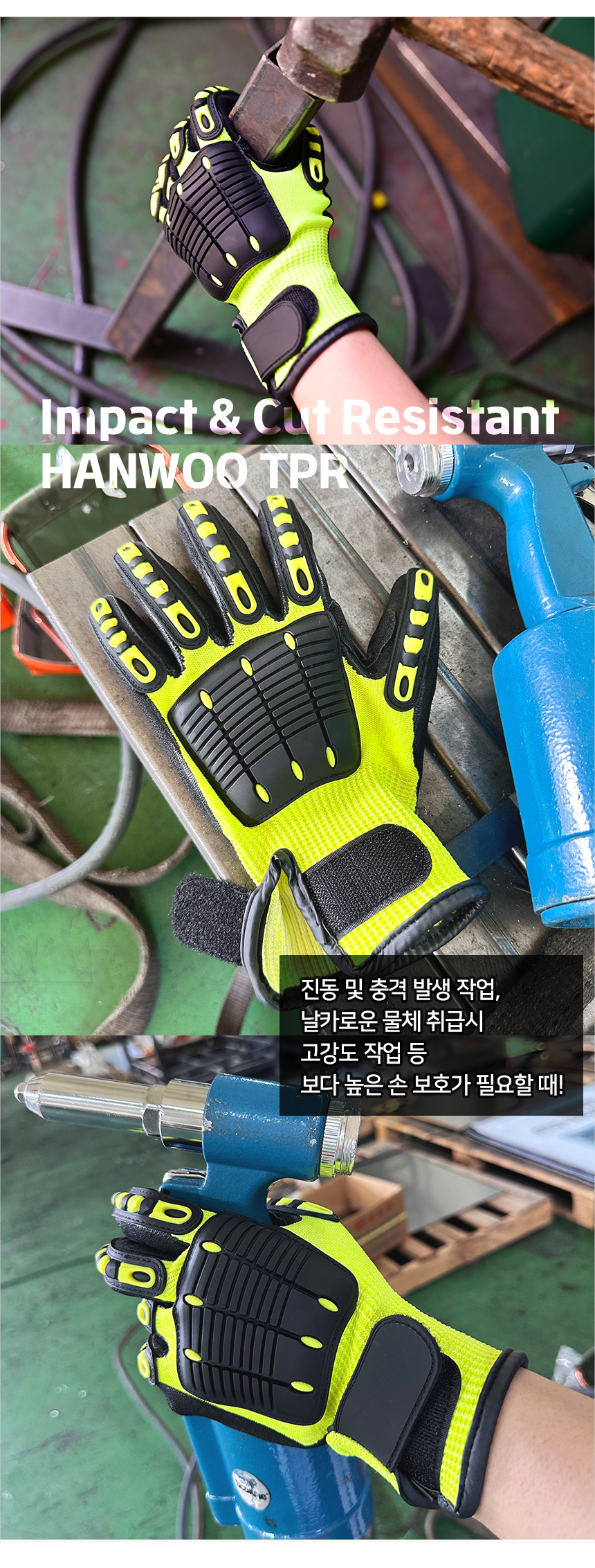 손바닥쪽에 진동을 억제할 수 있도록 두꺼운 내피를 덧대어 어려운 작업시에 편안한 착용감을 제공